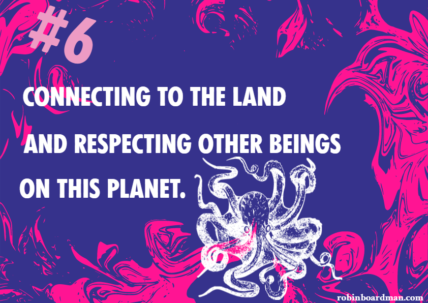 Skeena: This gives us a chance to reimagine how we want to work with each other. We create systemic agreements. We want to connect back to the land, not be included in the dominant culture. Inclusivity is a word that gets used a lot now and I think we should name the subtle but important flaw in that word. Being included means having your voice heard in a dominant culture that claims it will protect the planet. Whereas being the change means connecting back to our ancestors' earth-protecting practices and finding our voices, not the ones that nicely fit into what already exists.