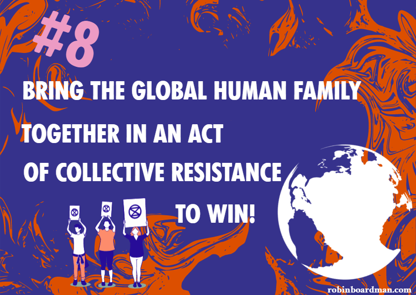 Kofi: The practicalities of the vision mean that we need to repair the harm of coloniality. We need to imagine the world beyond that. Indigenous activists have long pointed to a world of not harming each other. This is what humanity can truly lead to. Extinction Rebellion has been a meeting point for thinking beyond harm and into a beautiful future for many generations. Being the change means primarily being the change to stop the harm. That means stopping harm to ourselves, others, including other lifeforms, and this planet. This will stop us from running off the cliff. We can align our coliberation movement around stopping that harm. When we can heal ourselves then we have huge potential to help heal and protect our planet. In other words, it's Bob Marley’s concept of One Love! It's mind-boggling that we have so much harm and knowledge of how to address it and yet we can’t see the love and protection needed for the world. It starts with a recognition that the life of one is the life of all of us.