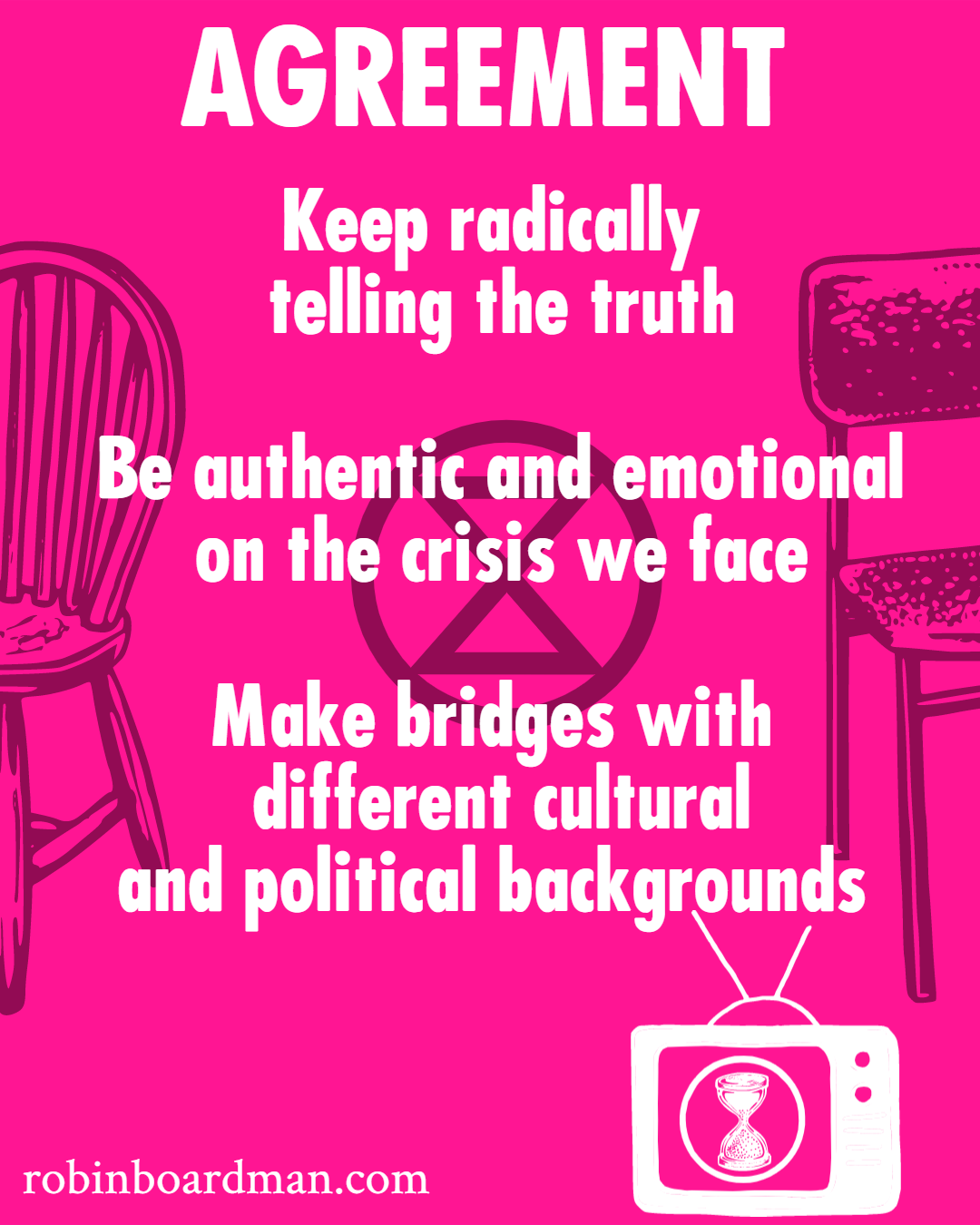 For example, XR flourished with the April Rebellion but was mortally wounded by Canning Town. Perhaps people will come to XR from climate disasters. Can you turn Canning Town into a positive?