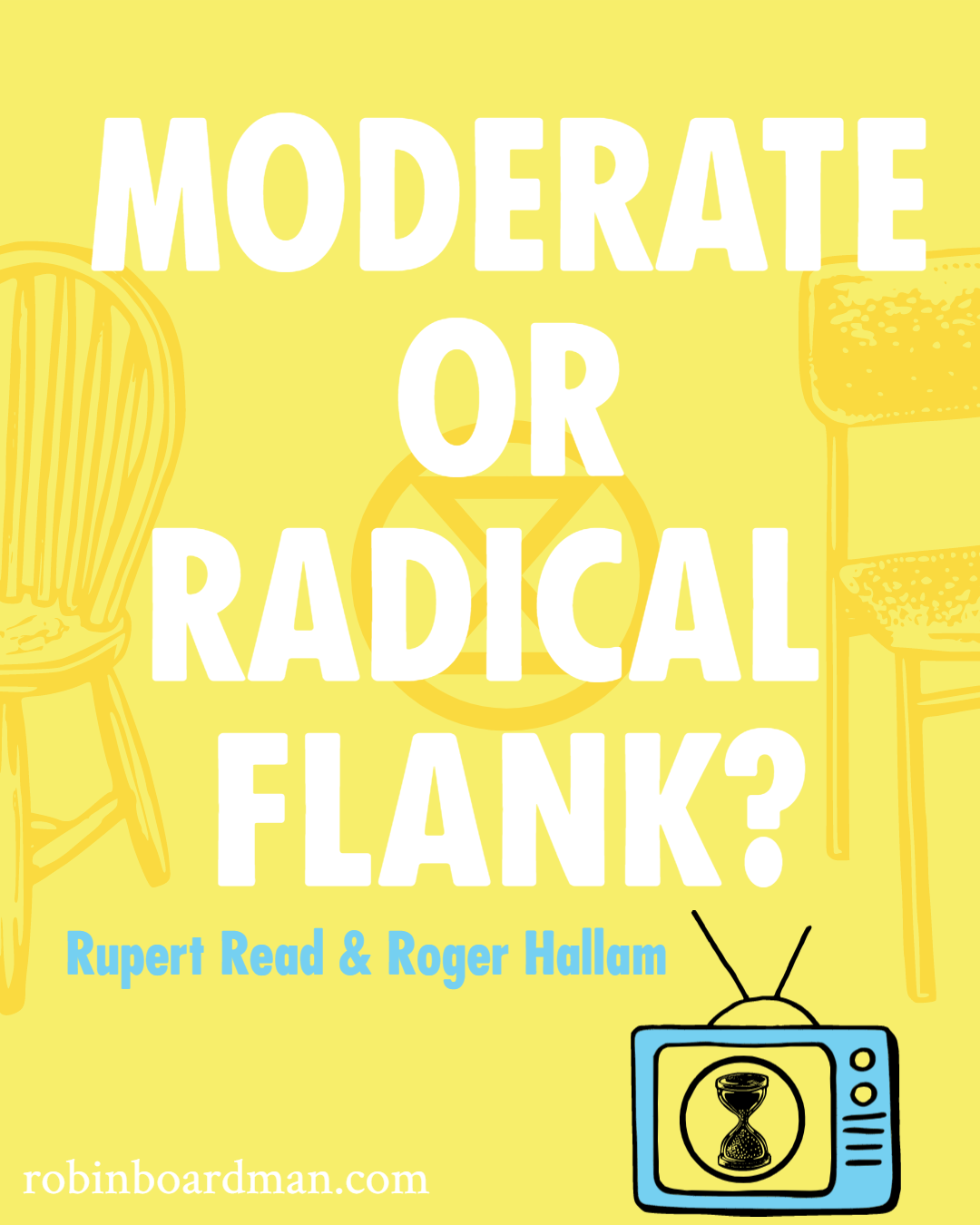 In the run up to the Spring Rebellion the word strategy is hotly discussed. But what, concretely, are the different strategies being proposed for the climate movement? In this post and upcoming ones, I hope to try and clear the mist around a few proposals. To start, I'll break down the key points of a recent public debate between Rupert Read and Roger Hallam on their suggestions for a moderate and a radical flank to Extinction Rebellion (XR).