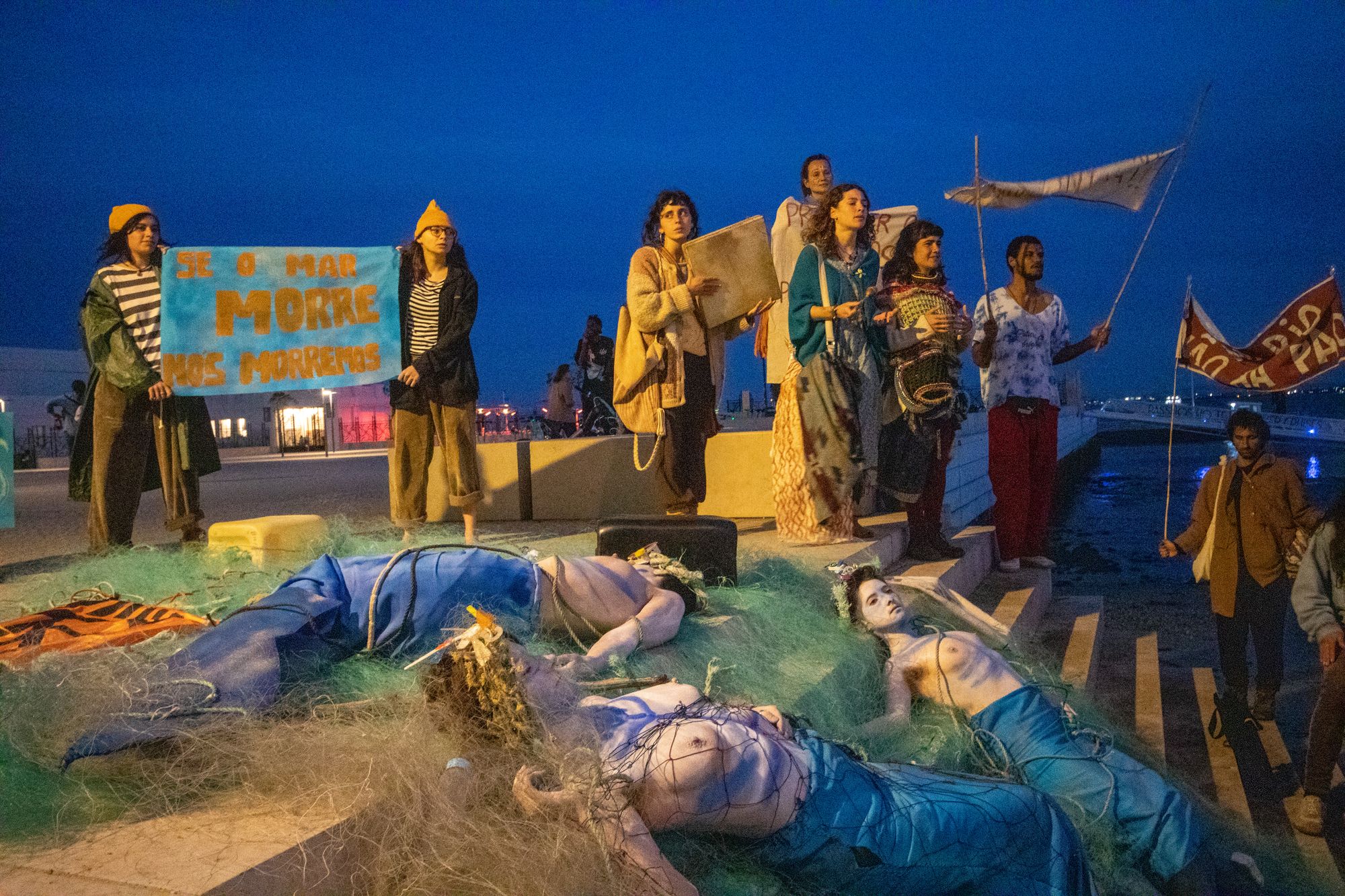Last year, Ocean Rebellion had protested outside the UN Oceans Conference in Lisbon, decrying the wanton destruction of the world’s largest ecosystem. Now, its star Portuguese activist, Rita Cruz, was continuing the legacy for Water Day. So when my fever cleared, I called her to offer my services as a mermaid corpse for the upcoming performance by the Merpeople. They state: