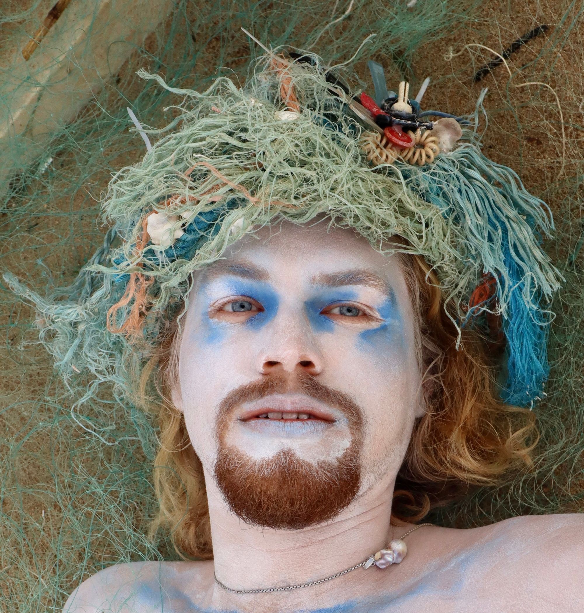 We transitioned to our positions, squirmed into flippers, donned crowns of washed-up plastic waste and flopped on the beach steps while nets were cast over us. Transformed into a captive human fish, I drifted into a meditative gaze as the crimson sun waned into purple darkness. In my periphery, I could see the excited ogling of onlookers and the looming lens of a camera.