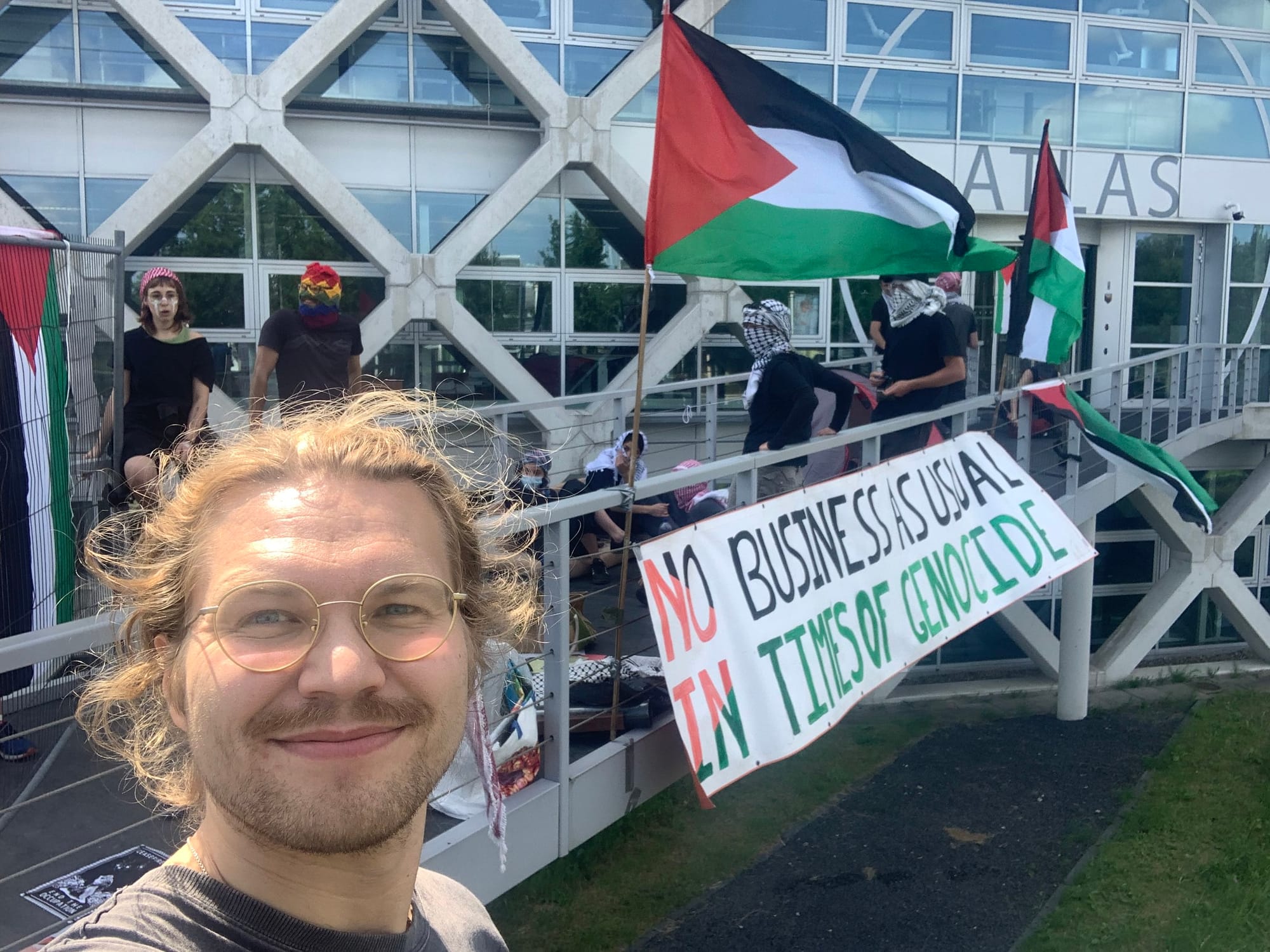 Revived, I joined the blockade at Wageningen University, where students shut down the main building to demand an end to ties with Israeli institutions complicit in the genocide in Gaza. The sun shone on peaceful resistance and support swelled, particularly around the finale DJ set!