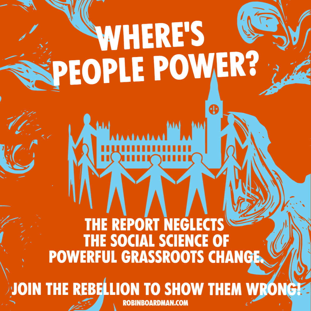 As the report lacks crucial information for grassroots change, we need to create it ourselves. Showing the world the power of social tipping points and contagion, and manifesting our power to the best of our ability. It's our best opportunity to inspire others into action. We wouldn't usually think to resist our government if it wasn't for our terrible leaders but now we have been forced to. We can encourage others to join us in that. Most people now know of Extinction Rebellion or Just Stop Oil but mainly as the enemies or pariahs of mainstream media. With effective campaigning and community-based climate action, we can turn that around.